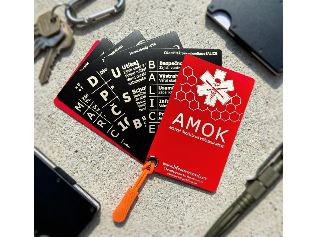 Sada karet AMOK je esenciální, kapesní průvodce pro zvládání extrémních krizových situací, jako je útok aktivního střelce nebo jiné hromadné násilné incidenty. Karty poskytují komplexní a logicky uspořádané postupy, které vás provedou od prvních sekund útoku až po poskytnutí kritické péče zraněným. Jsou navrženy pro okamžité použití pod extrémním stresem.