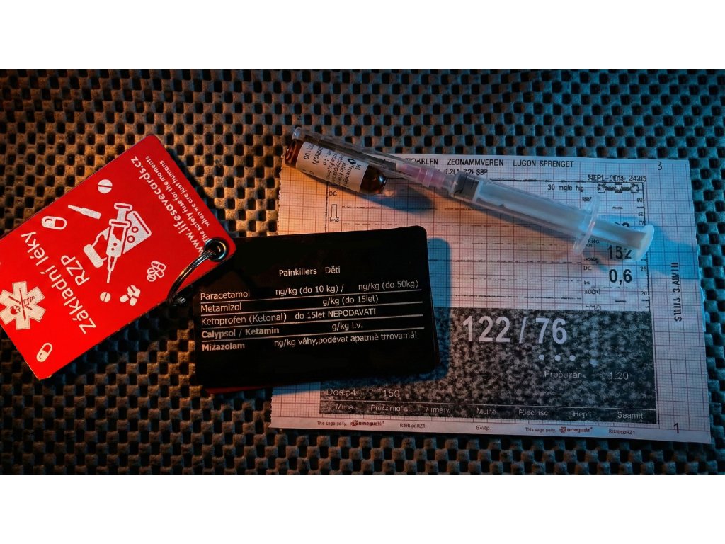 Léky dospělí: Adrenalin, NorAdrenalin, Apaurin (Diazepam), Midazolam, Dexamed, Dithiaden, Salbutamol (Ventolin), Ondasetron, Cardegic, Heparin