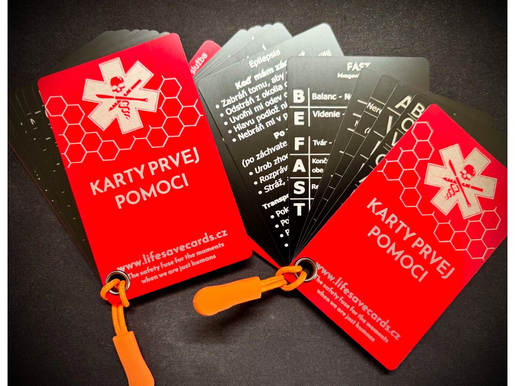 Súbor kariet prvej pomoci obsahuje všetky nami doteraz vypracované postupy, ktoré sa vám v krízových situáciách môžu hodiť. Karty sú veľmi užitočná pomôcka, ktorá môže v mimoriadnych udalostiach pomôcť zachraňovať životy.
